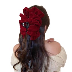 Pinza para el pelo de mariposa de terciopelo negro y rojo para mujer, 20cm, tamaño grande, pasadores acrílicos de doble cara, pinzas para el pelo Jumbo para invierno