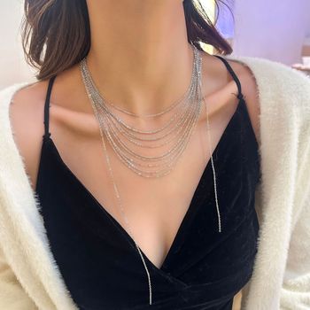 GEERDENG kalung Choker Multi lapisan, perhiasan kalung rantai tulang selangka rumbai tumpuk mewah untuk wanita