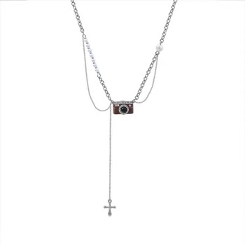 Kalung manik-manik berbentuk kamera Vintage kalung desain Niche mewah ringan wanita